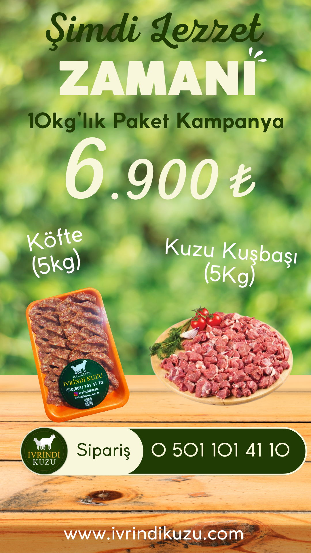 10Kg’lık paket kampanyamızda 5kg Kuzu kuşbaşı , 5 kilo köfte sadece 6900₺ ile sofralarınızda.
